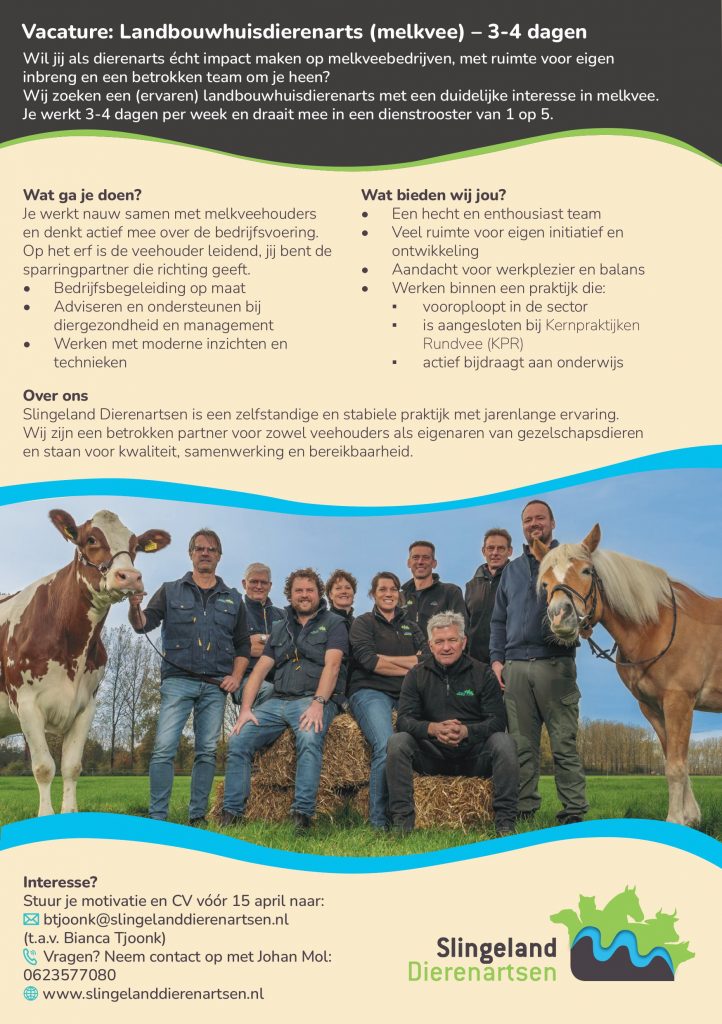 Wij zijn op zoek naar uitbreiding van ons enthousiaste landbouwhuisdierenartsenteam.